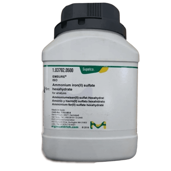 Ammonium iron (II) sulfate hexahydrate analysis EMSURE® ISO is a Laboratory Reagent Grade Chemical.