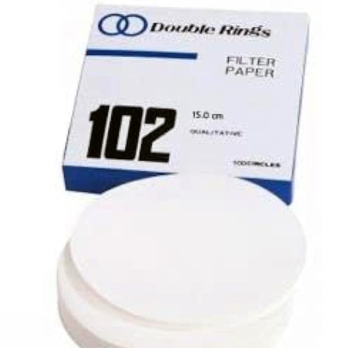 Double Rings 9 cm Filter Paper, Qualitative Folded Prepleated, No.102 90mm Dia, Biodegradable, 100/Box. Double rings of 9 cm filter paper are commonly used in laboratory settings for various filtration and separation processes.