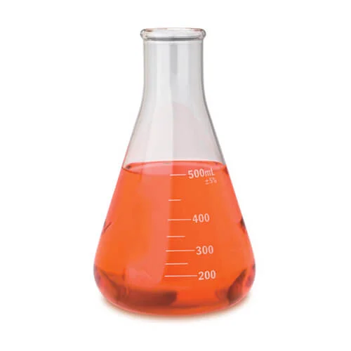 Glass Conical Flask 500ml, often referred to as an Erlenmeyer flask, is a laboratory vessel commonly used for mixing, heating, and swirling liquids. Made from borosilicate glass, it can withstand temperature changes and is resistant to many chemicals.