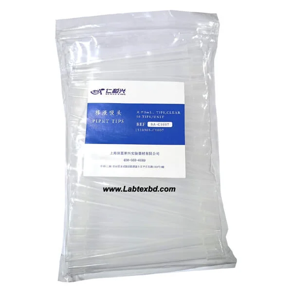 Micropipette Tips are essential consumables in every laboratory, ensuring accurate and precise liquid handling. This pack contains 50 high-quality 5mL (5000µL) long mouth pipette tips, specially designed for use with large-volume micropipettes. Manufactured from premium-grade, clear polypropylene, these tips are non-sterile, autoclavable, and disposable, making them a reliable choice for research, clinical, and industrial laboratories.