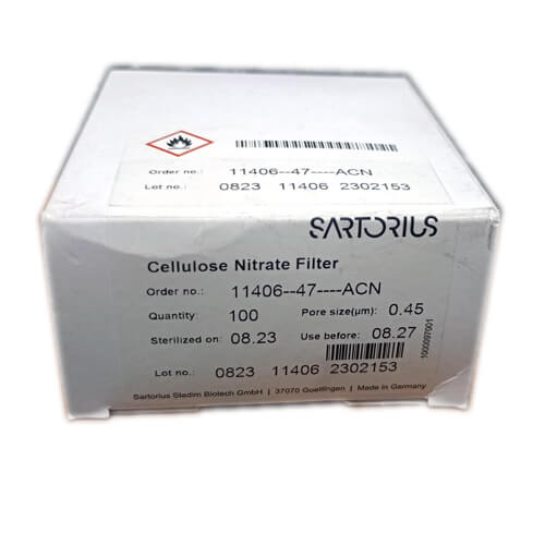 Sartorius Filter Paper, Cellulose Nitrate Filter 0.45um 47mm Dia Filter Paper, Made in Germany. It is Ideal for research and analytical laboratory use.