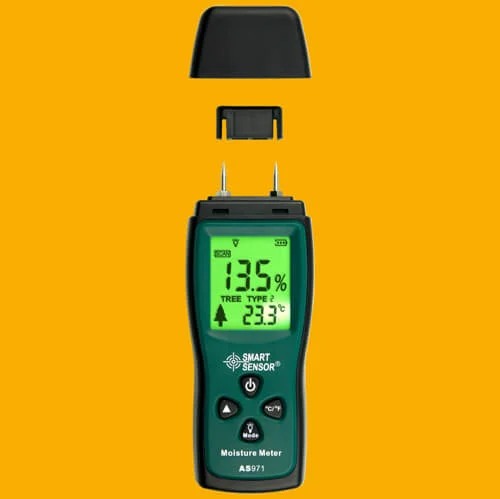 This Wood Moisture Meter is a professional moisture meter used to measure the moisture level in sawn timber (also paper and cardboard) and hardened materials (mortar, concrete, and plaster) as well as the environmental temperature. The measurement provides the basis for whether it needs to continue to dry or not, to better safeguard the wood quality.
