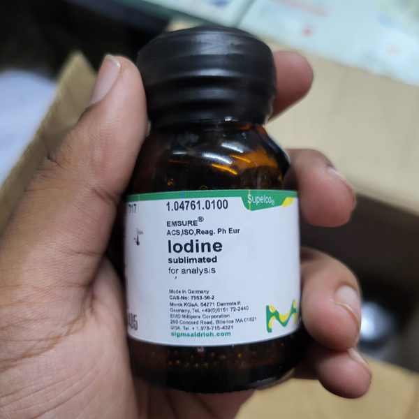Solid Iodine 100gm is a high-purity laboratory-grade chemical used for a wide range of analytical, research, and industrial applications. Known for its dark violet crystalline appearance and strong sublimation properties, iodine is an essential reagent in chemical synthesis, microbiology, titration analysis, and disinfectant preparation. This product is carefully packaged to ensure maximum purity, stability, and safe handling for professional laboratory use.