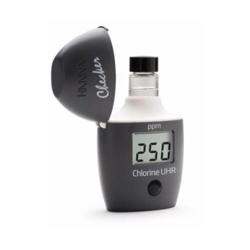 | Ordering Information | HI771 Checker® is supplied with (2) sample cuvettes with caps, a UHR chlorine reagent starter kit for 6 tests (6 powder packets of reagent A, 6 powder packets of regent B), a battery, instructions, and a quick start guide |