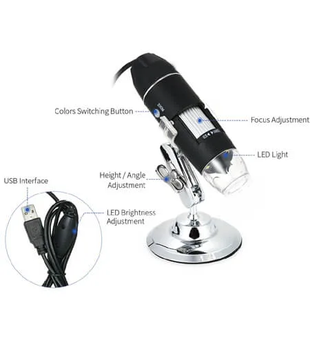 • 1600X Magnification: 1600x magnification and built-in 8 LED lights capture details.