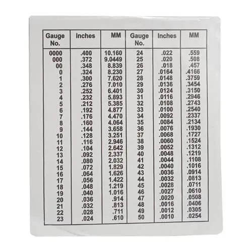 • Dual-Sided Round Wire Gauge: 1-36 American Standard