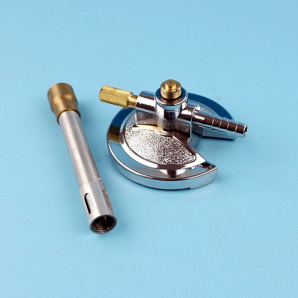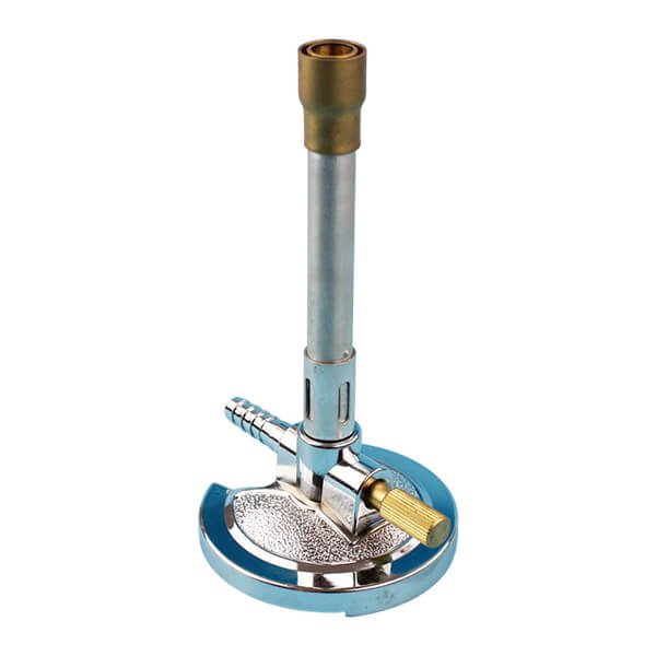 Furthermore, the burner is equipped with a side gas inlet nozzle, which connects securely to standard rubber gas tubing. Consequently, gas flow remains consistent and controlled throughout use. At the same time, the durable metal body offers long service life and dependable performance under regular laboratory conditions.